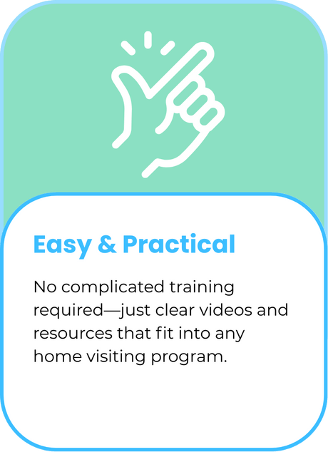 Yes! The printable guides and resources are meant to be shared with parents and caregivers you support. Videos can be shown during visits or presentations but are not licensed for resale.